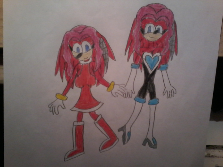 "This is Lien-Da, Grandmaster of the Albion Dark Egg Legion and there is two version of her in Universe 1029 like Mobius Light Future who is marrying to King Shadow, and Mobius Present which she is dating Trey when finding her and other Echidna in Station Squared. For the future one (which doesn't appeared here), she and Shadow got many children including May, Trey's first girlfriend but more on her future self bio will be on her own colored page sometime while the present one wearing both Amy Rose and Rouge the Bat to make Trey's happy which its did. As for why she dressed like those two, for personal reason of my own is that I never seen her wear like Amy and Rouge once and since Amy Rouge tread restarting up, I figured I can show her off in those two outfit. I don't know if this going to work or anyone going to like this but I'll play the waiting game until then, so I hoped you enjoy this art and have an good day." - Universe 1029