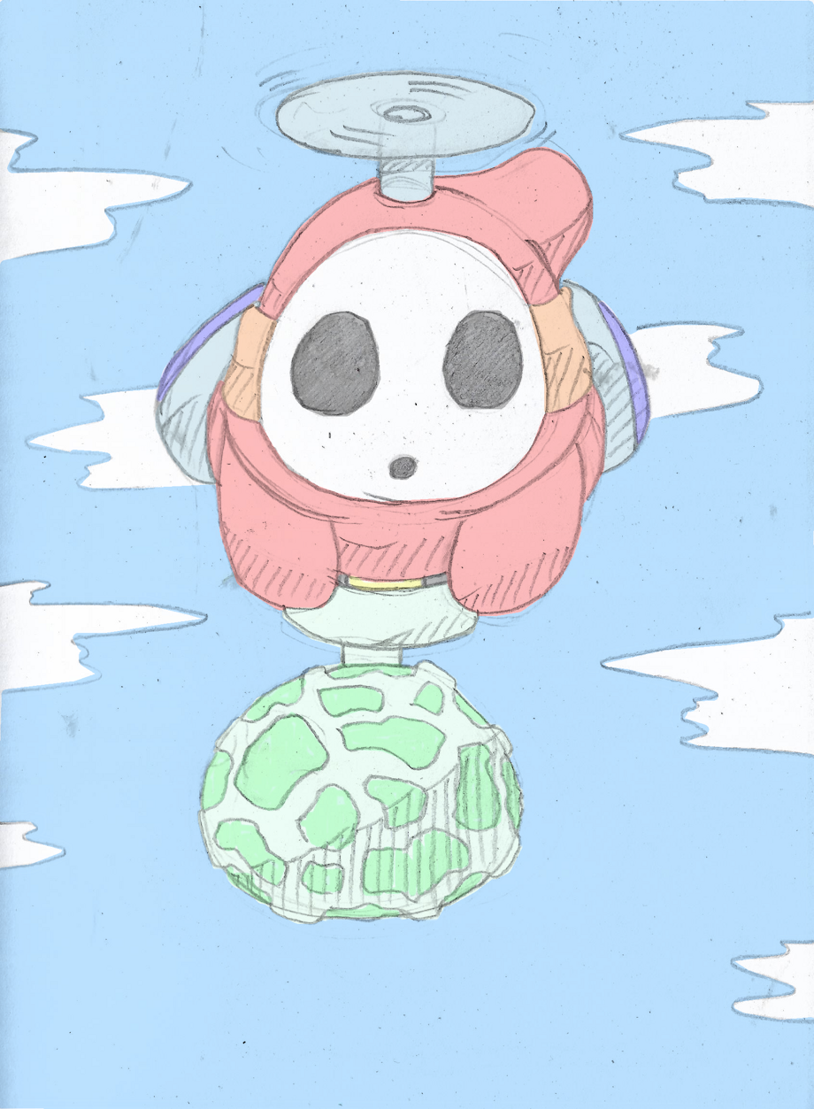 Destombera wanted to see a Fly Guy, from Mario's universe, carrying a melon. I do not own Mario's universe or any of it's elements. uwu Nintendo does.