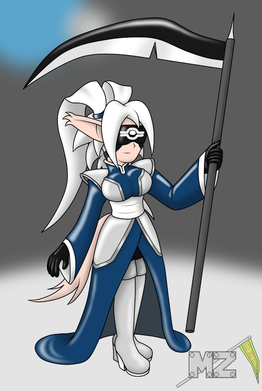 of my oc Saga Yamahachi wearing a outfit of Duskona wear and Luner Empire wear that in both are universes.
