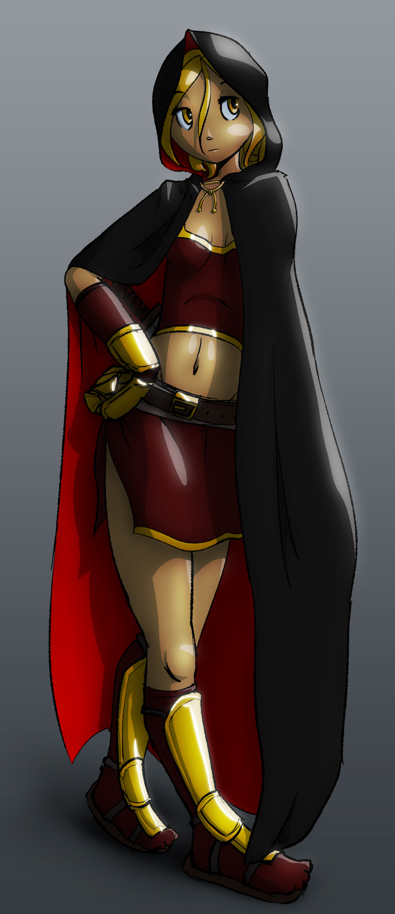 I would complain about she is wearing too much, but that don't fly here. XD But still, good work, she looks nice, simple and unassuming, but she has that sword/dagger strapped on behind her so she can protect herself.