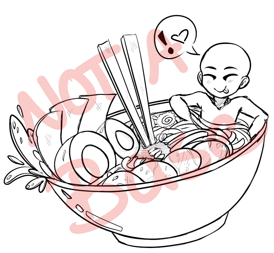 This is a your character here commission! This means I draw your character in the bowl where the placeholder character is and finish the piece with linework and color it! It is priced at $20 and unlimited but I take slots to limit myself from taking too much to work on.