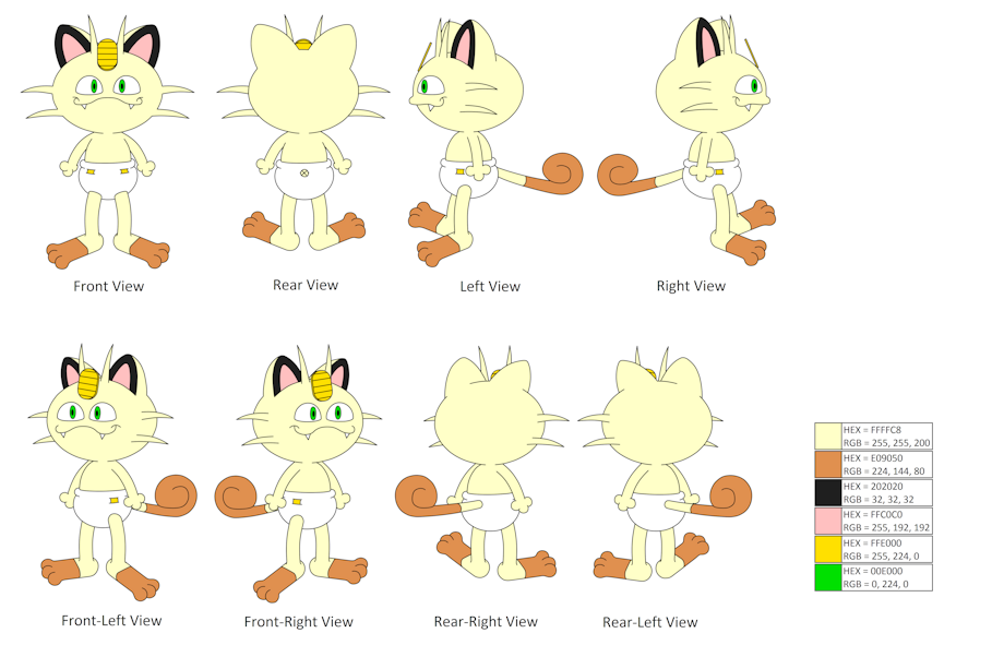 Catty the Meowth Reference Sheet (with Diaper Tape)