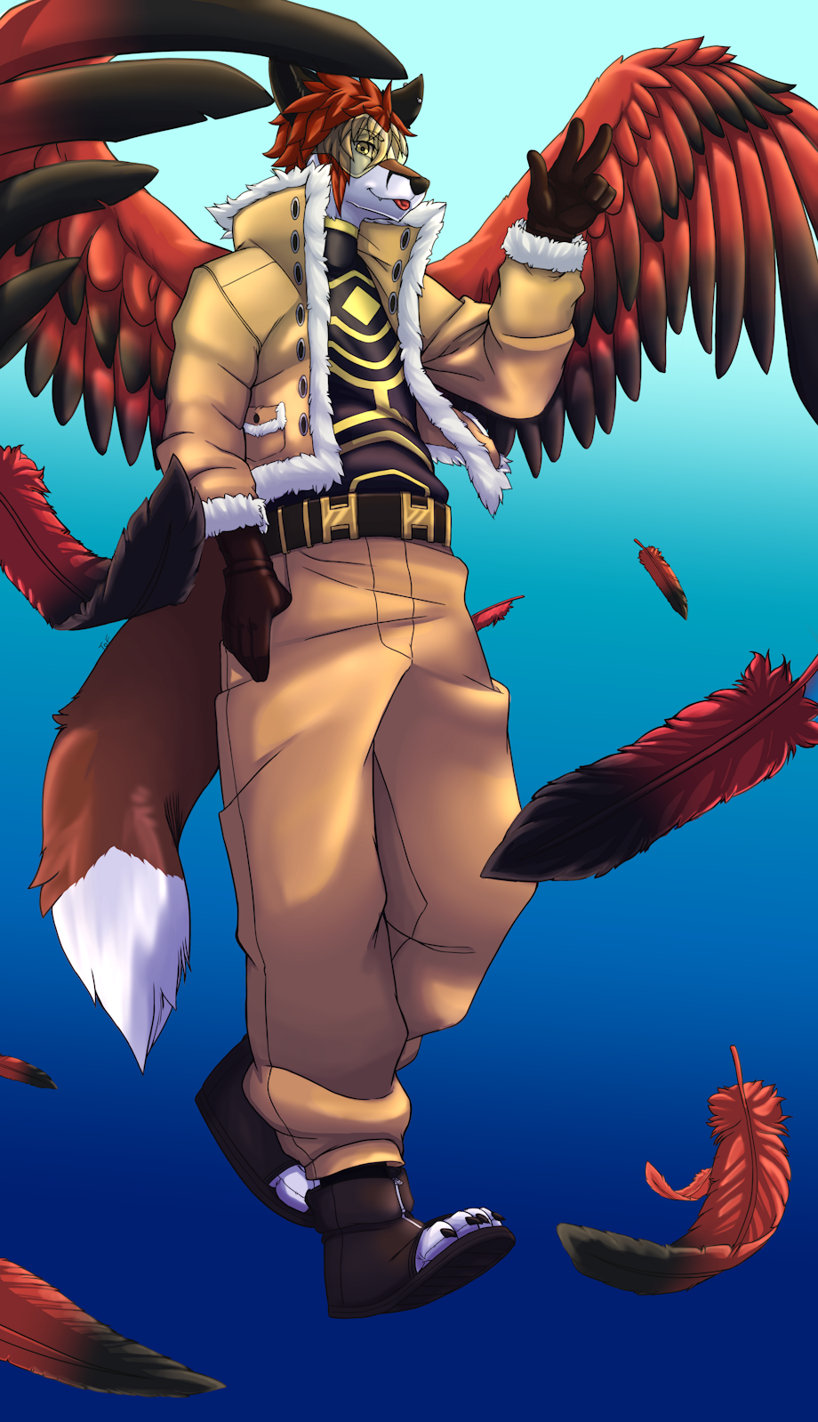 not all yiff here but heres my folf kit dressed as hawks from my hero academia :D