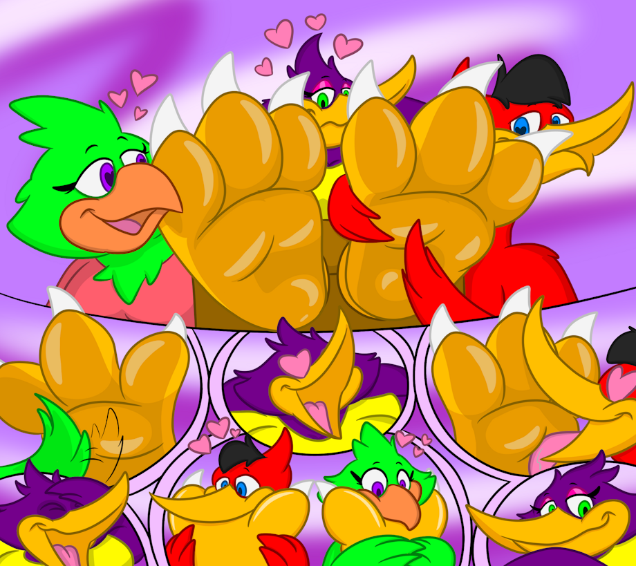 a multi frame pic feturing betty getting her feet adored by matt and emily as to be expected matt and emily cant resist the appeal of betty's huge feet, and are enjoying showing there appreciation