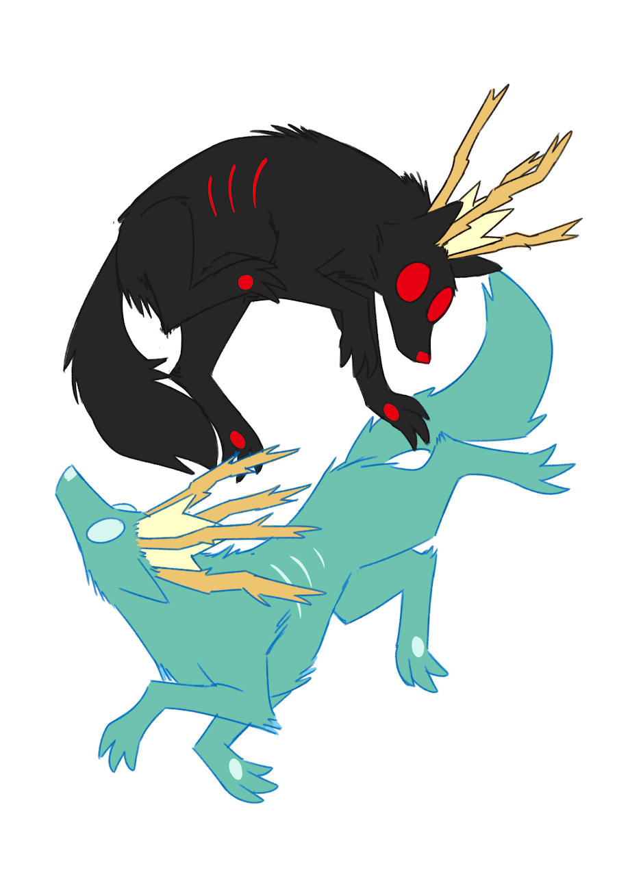 man, when i see these two, it reminds me of the Zinougre and its Black varient. pretty cool art.