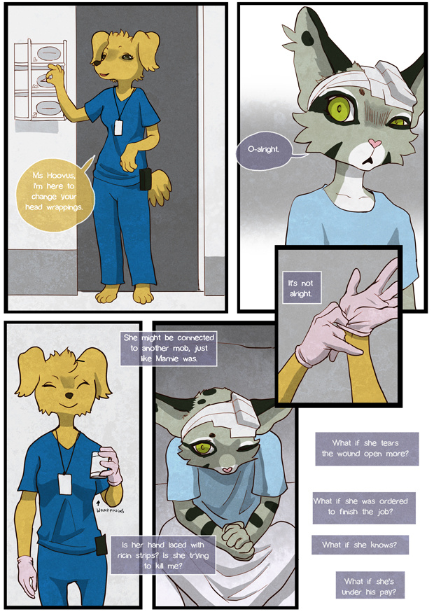 And the nurse/tech twists her head off to check the interface connections to fix the underpowered eyelid servo's since they downloaded her mind to A full robotic body.