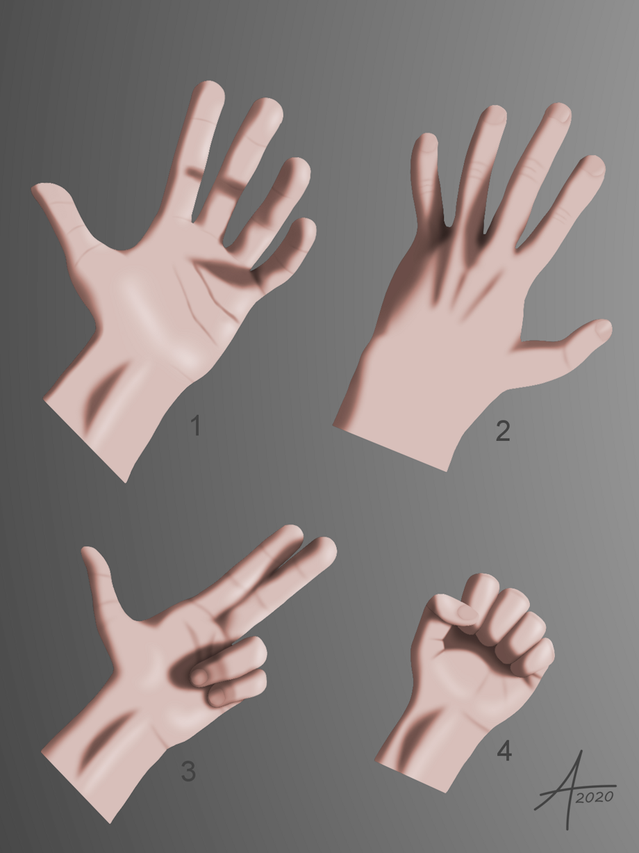 Tried to understand object's basic shapes, such as circles for fingertips and rectangles for the main part of the hand. Made a hand-drawn pencil sketch before digital painting in grayscale.