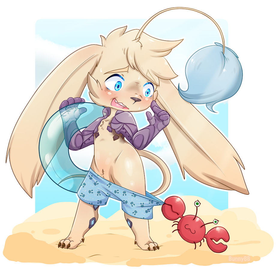 An older commission from an artist over on FA; Just a cute chibi of my sona at the beach, the crab has something to say about my choice in wardrobe however.