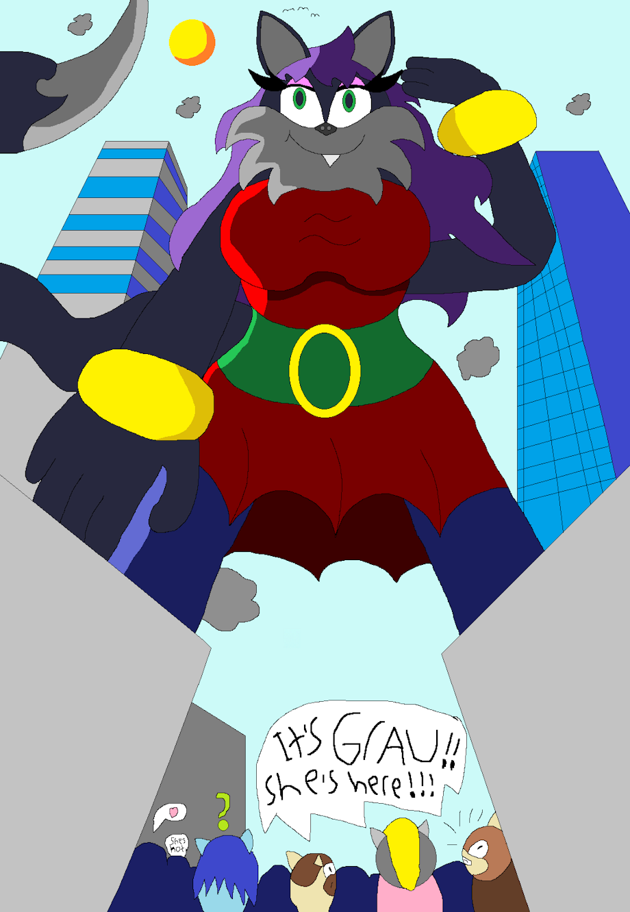 The buildings rumbled and the ground shook as loud booming thuds were heard, soon the populace on the streets of the city would all unilaterally avert their gaze upwards in unison as they would see the colossal and towering vixen, Grau Bradanksa. Grau herself hadn't noticed the tiny pedestrians as she was off looking into the distance. As she averted her eyes over the horizon, there was slight panic as well as confusion. There was however, the occasional fan of hers or admirer who would look at the titaness fox as a beautiful demigoddess.