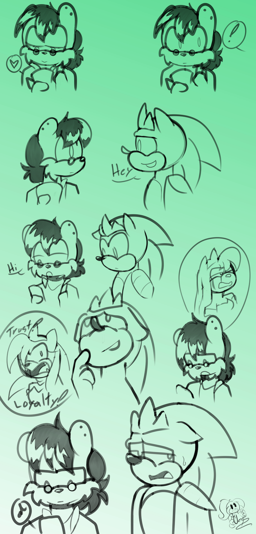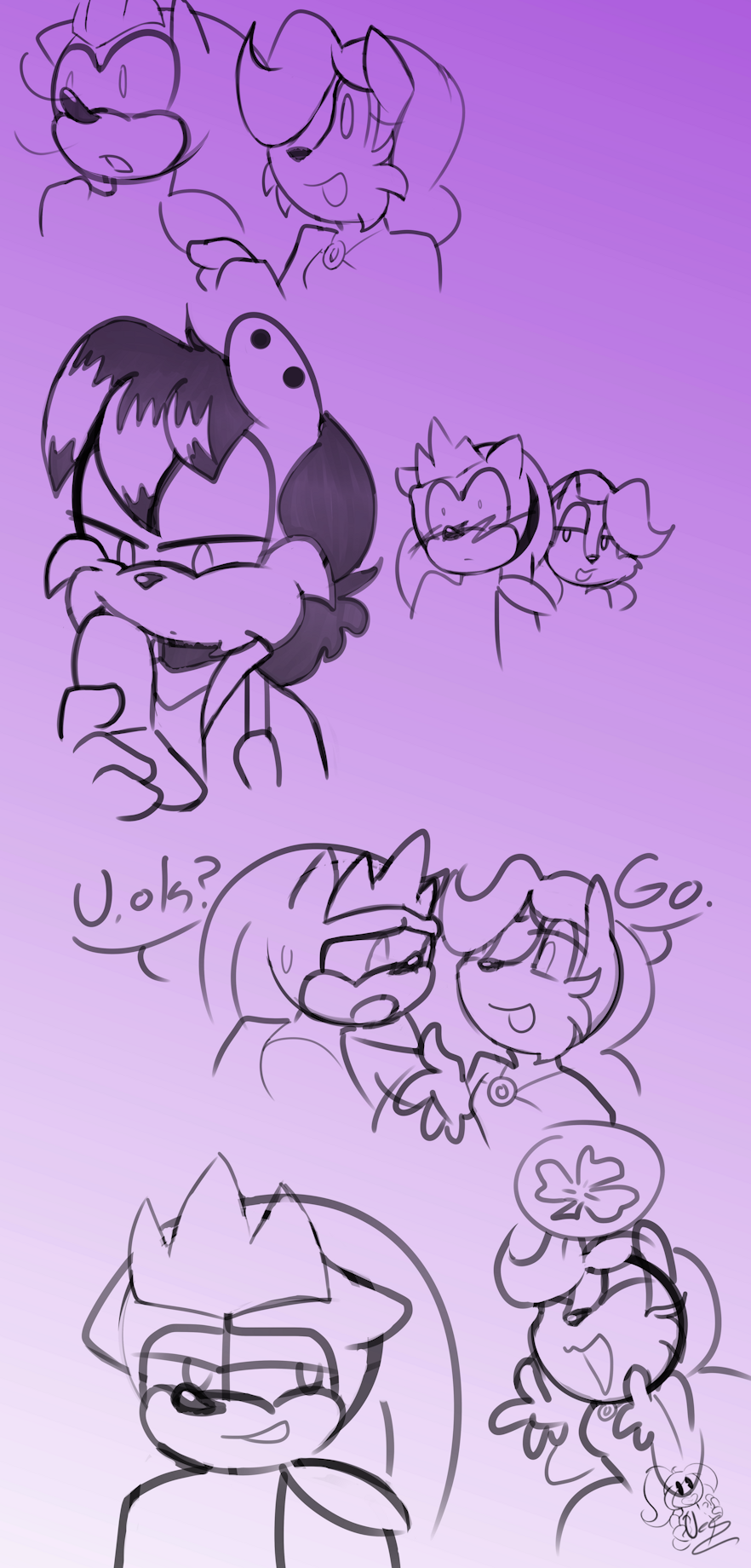 After everything Sonic and Sally take awalk in the garden of Snottingham castle tring to figure out how to talk with Amy and maybe getting their friends back, but it seemed hard since things changed, and Amy became quite scary. Changing the subject Sally does point out how Sonic looked very happy to see Ash sure it was when he wasa trying to calm Amy down so he couldn't really go up to him and talk, but then Sally spots the mongoose now out of his fancier clothes and with no Amy insight so she encourges him to go over and talk to him, Sonic was nervous but with Sally cheering him on he goes over and just kinda like he expected it wasn't the best conversation it was awkward and heartbreaking.