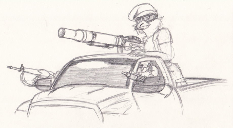 I love it-and mounted to a 2002-present Dodge Ram-it's interesting it's mounted to the roof! Well done as always. Vehicles, furries, and guns all in one. My favourites.