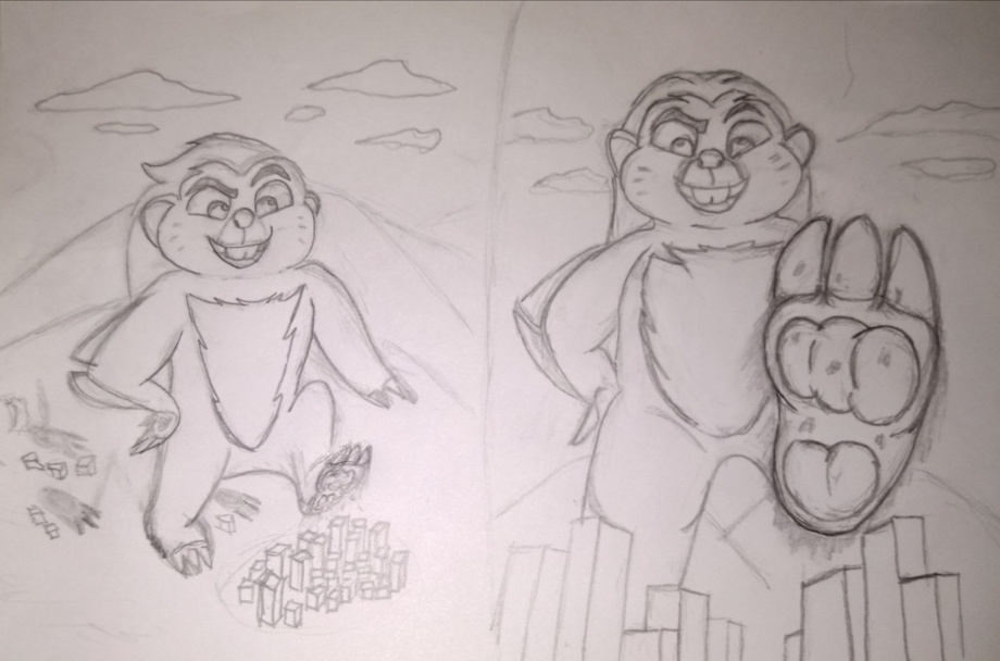 Here is another drawing that I have in my FA account where we see bunga having fun while crushing cities under his feet