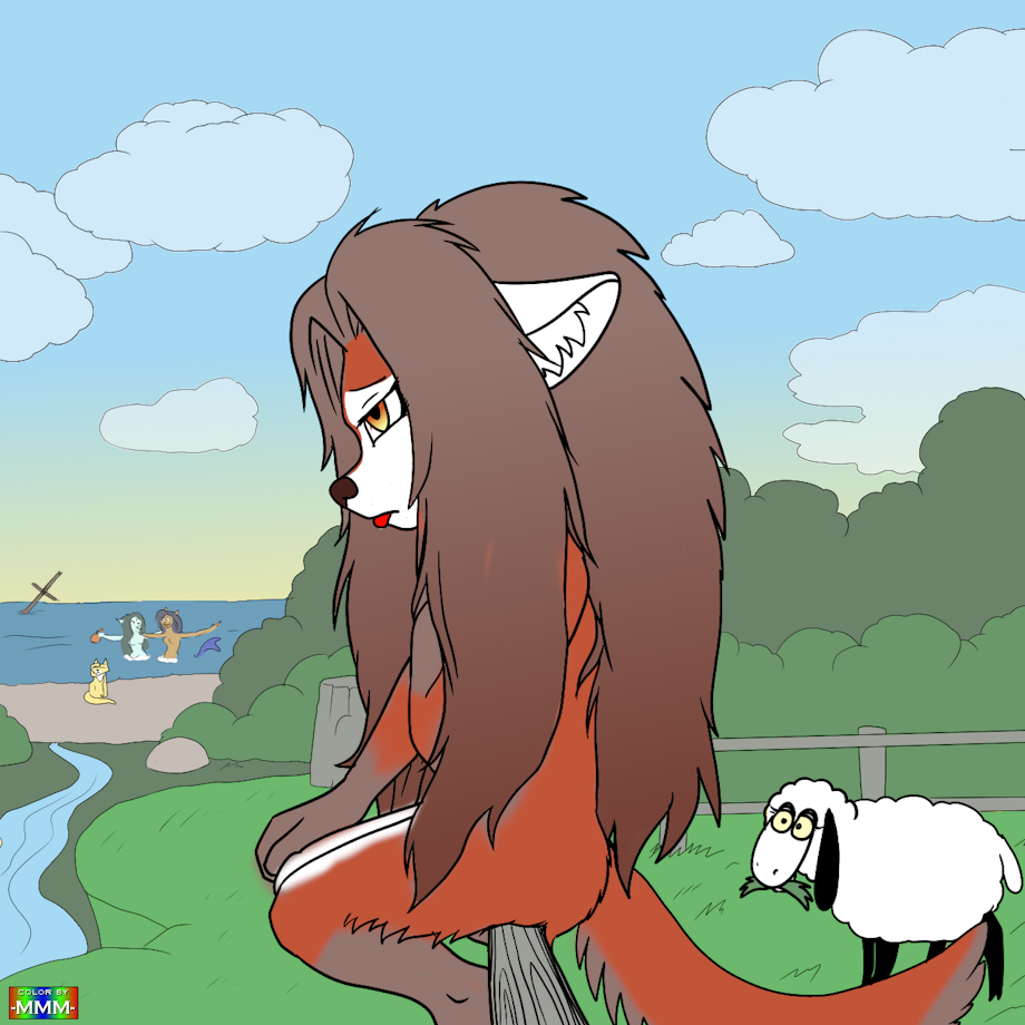 Meanwhile, in the background, Robin has rescued a bottle of good brandy from her wrecked ship, and she and Mermaid Tali are celebrating. The ship's cat is unimpressed.