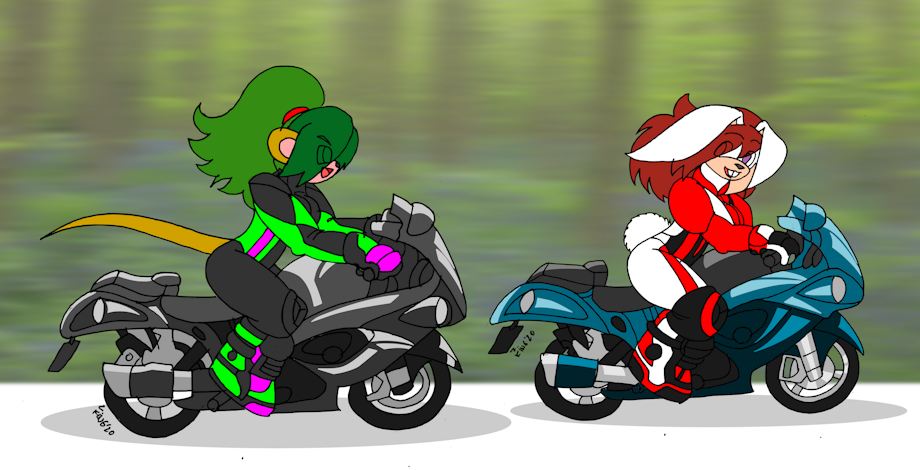 Meet the bikers,Lariana and Zyria.They both drive Suzuki Hayabusa GSX-1300R-K8,they drive very fast,they maybe are friends,but when racing in same races,they're rivals.