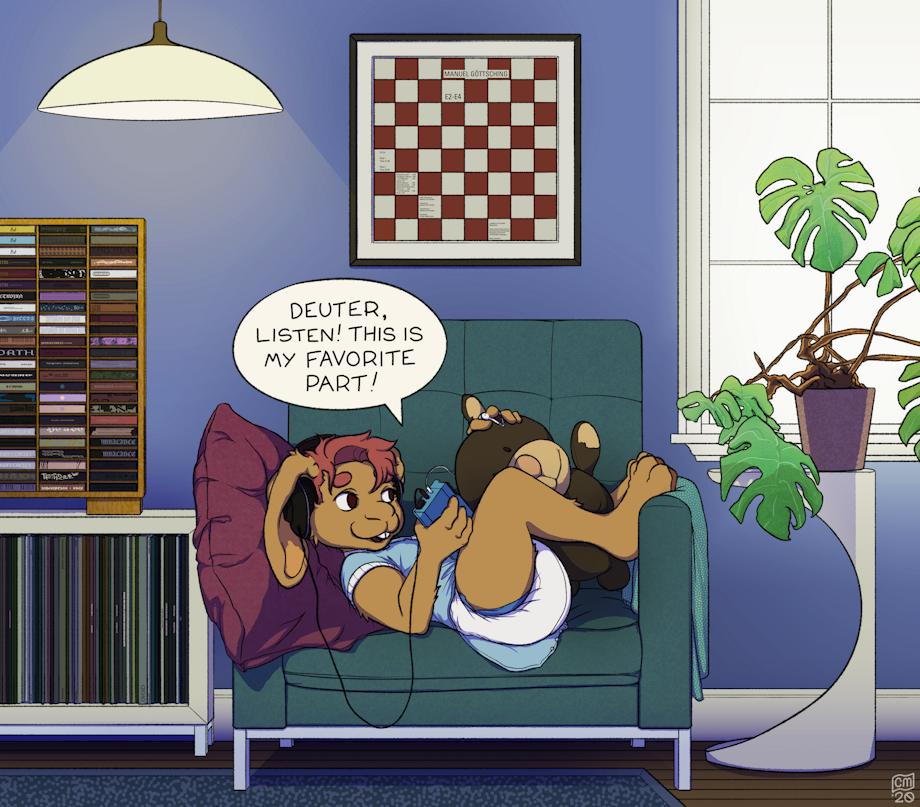 this lil guy got a new toy!! this Walkman has TWO headphone outs - now Deuter bear can listen too! what a nice day for our favorite babybun :3