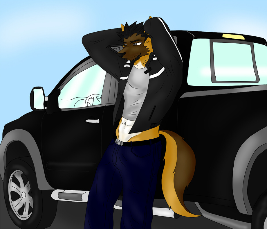 This is really lovely, I love his pose- and the vehicle behind him-- both of them look really wonderful <3