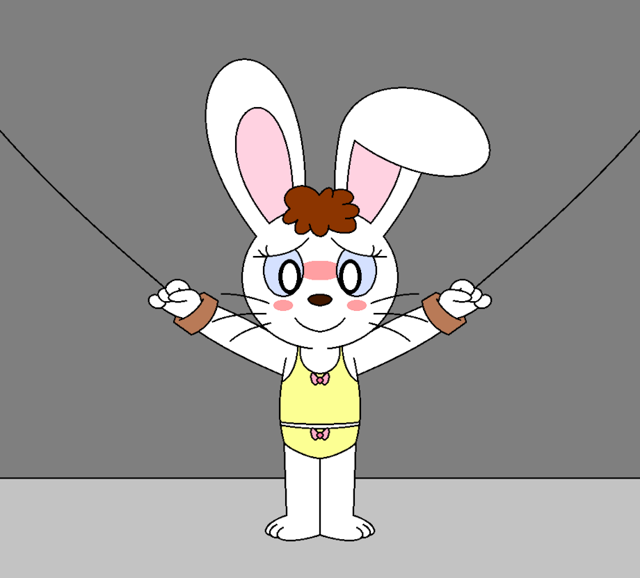 Here is a picutre that I decided to come up with. It's Mimi Rabbit from Adventures of the Little Koala who got kidnapped without her dress, stockings, and shoes, but her underwear by a kidnapper who was an adult who looked like an anthropomorphic dog. What if Roobear's friends came to rescue her? Maybe Betty? Roobear? Laura? Pamie? Or even Nick? Floppy came to rescue Mimi! He also took her clothes to her right away.