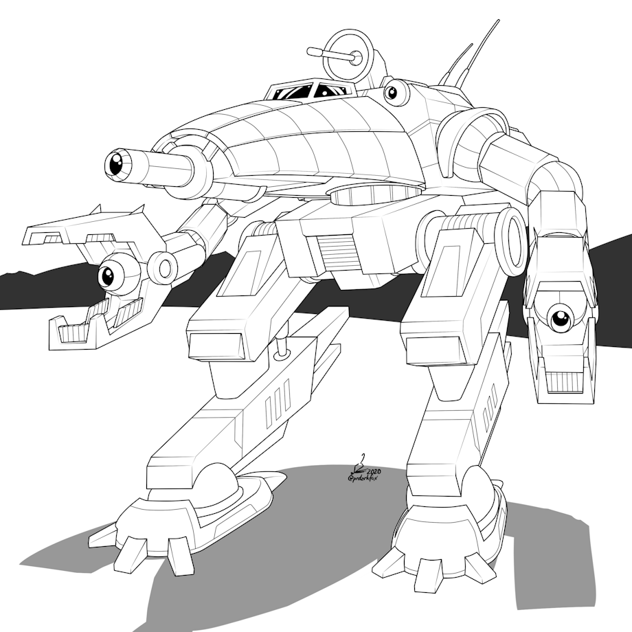 Commissioned by ProfPyro. This configuration mounts 5* Large Lasers, a medium laser, a small laser, and a Beagle Active Probe, with enough double heat sinks to jump and use all of the large lasers together. Genbu was lost in a battle against Clan Wolf, but not without dropping 3 Clan 'Mechs on its own.