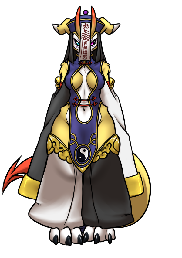 A fair update of Kyonshimon, as i wanted to keep with the miss-matched motive of her other forms. And, as i finished it, it turned out pretty well. So, mismatched sleeves and leggings, and a more purple-y purple outfit.