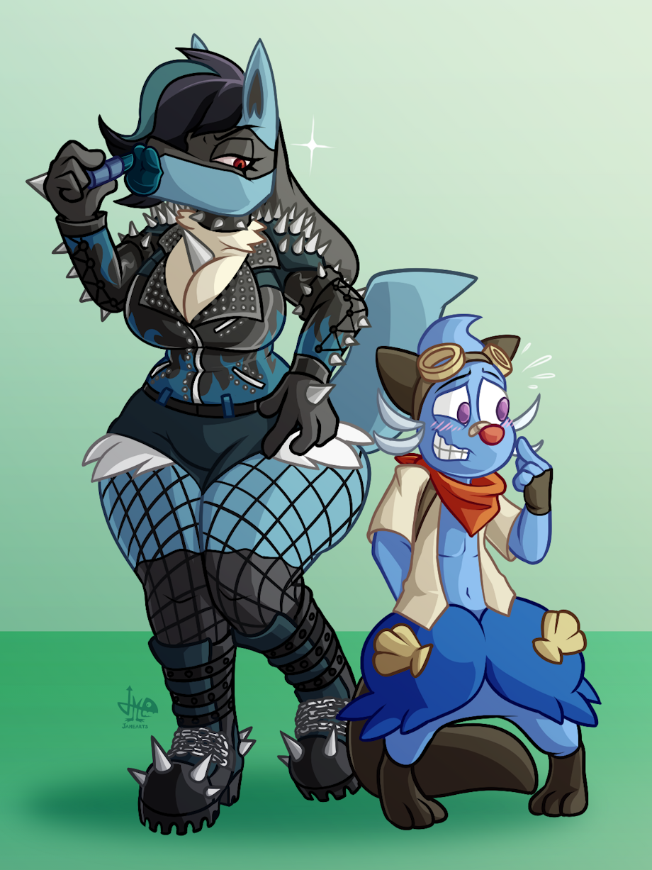 Big biker girl and her side-kick~