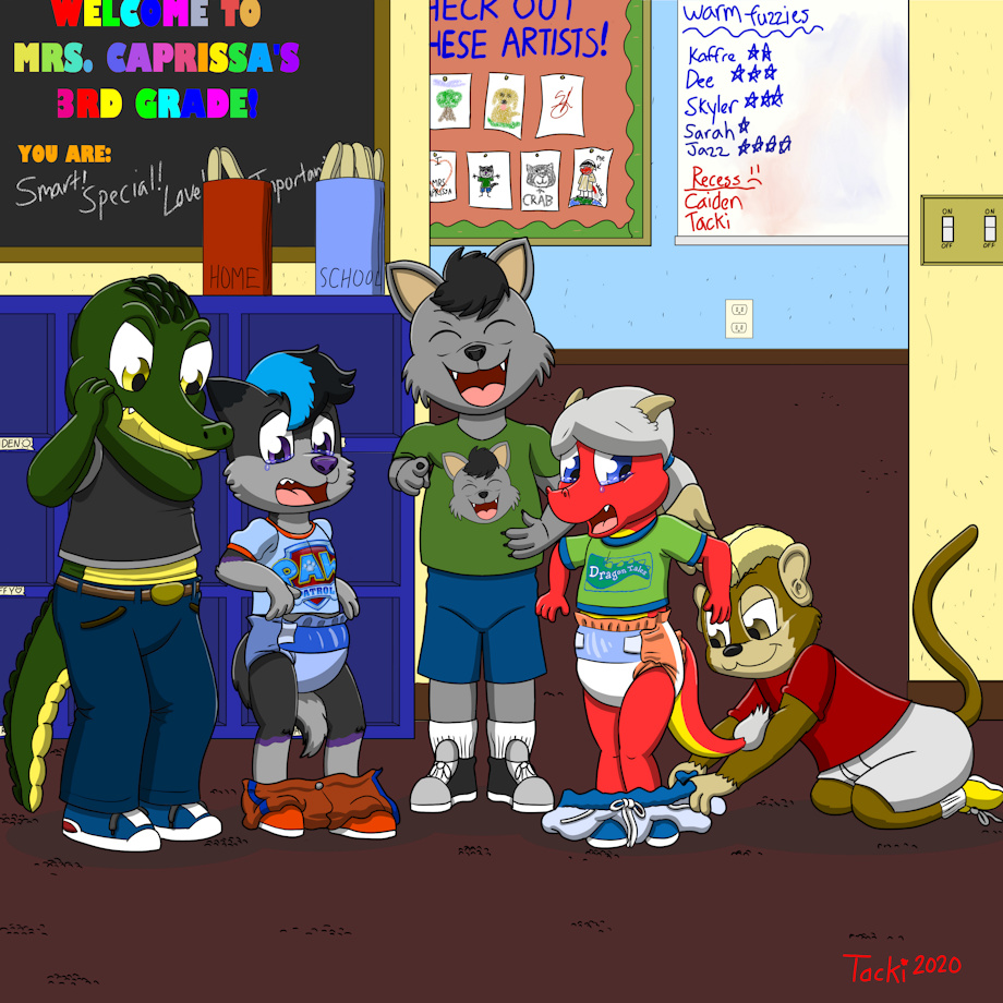 Dee and Tacki, both in the process of returning from the nurse's office (with clean diapers again) run into some 5th grade bullies just before they get back to class. School can be rough sometimes.