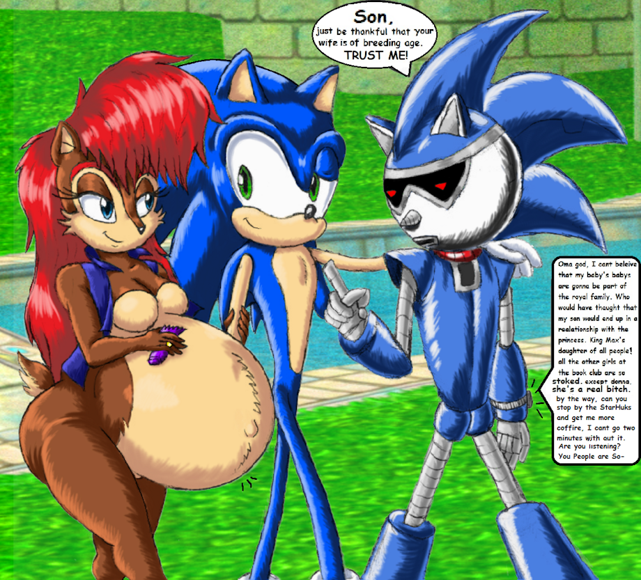 Enjoy this pic where Sonic takes a stroll down the royal Chao garden with both his very pregnant wife and robotisized father while Sonic's mom nags Jules robotic ears off.