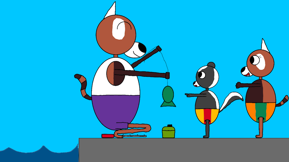 For Father's day, Quing took his kids fishing with him to the lake. Since they were very young Quing opted to teach them how to fish. After some patience Quing got a bite on his fishing pole and instantly started to reel it in. After a few seconds, he reeled in a nice green fish that he showed off to his kids. Ling Ling was proud of her dad for his fishing skills, Fletcher meanwhile was curious about the fish and attempted to feel it.