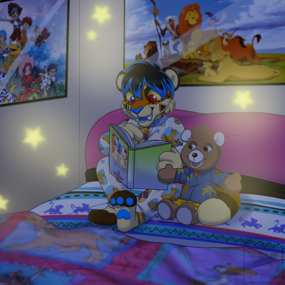 Hunter '' reading '' his Teddy Ruxpin story while listening to his Teddy Ruxpin telling it. Teddy has been a huge part of my life, I have the original WOW Teddy ( both first and second generation ) and a lot of books and tapes. I'm so glad to still have one in working order! I still listen to his lullaby tape from time to time. ^///^;