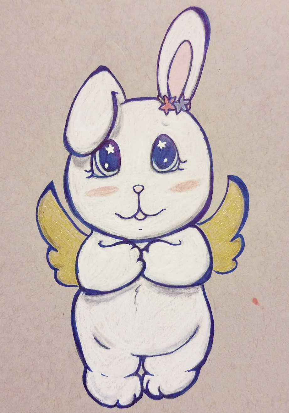 Outside of drawing furry smut, I enjoy collecting toys, especially vintage toys and plushes. I've wanted one of these in particular for a few years now, but they are a little spendy and the timing didn't seem right. Well, I thought this year I'd treat myself for my birthday and I'm now the proud owner of a Mattel Angel Bunny plush! :)