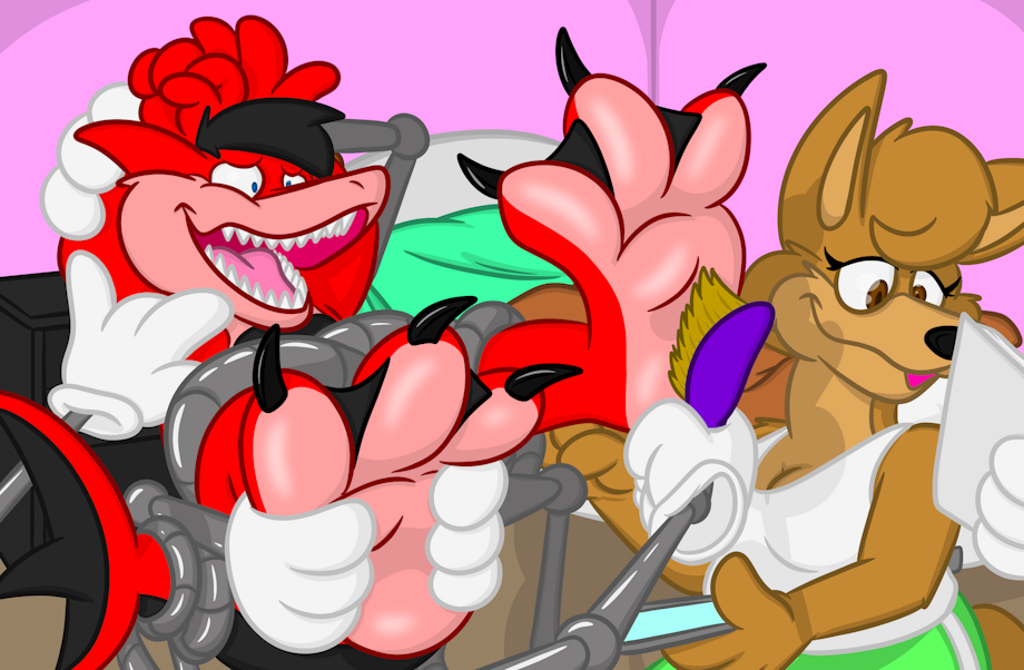 a piece featuring daisy using a newly procured tickling machine to tickle shark matt.