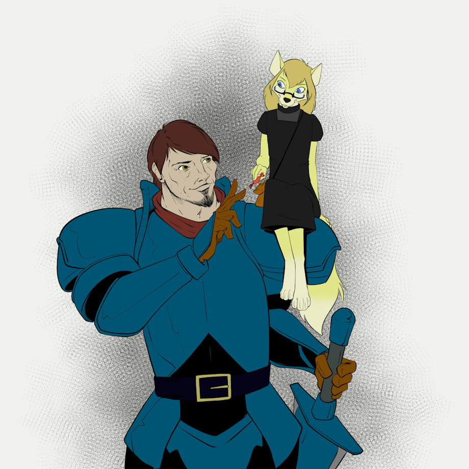 Poly has had many names, and many adventures in her life. In this one, Emily sits on the shoulder of her compatriot, defender, and, most importantly, giver of sweets.