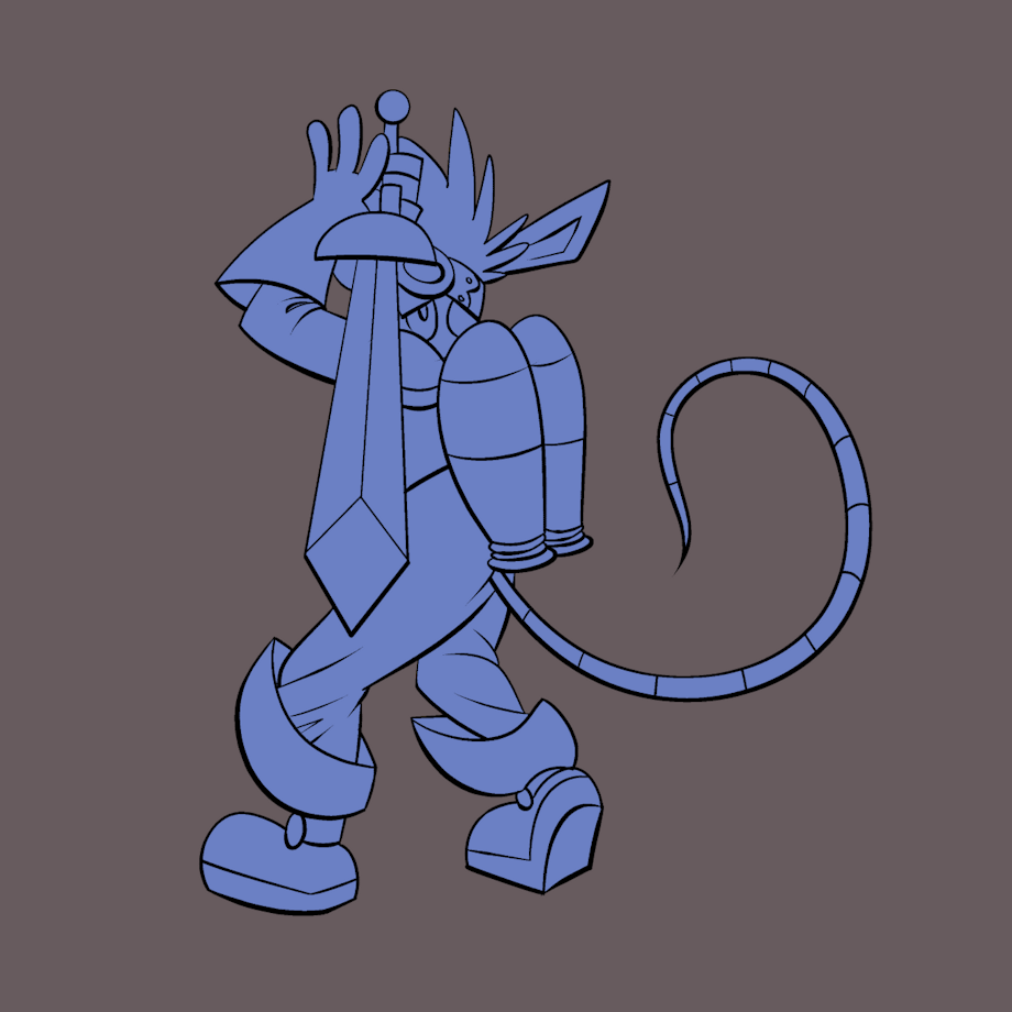 An action sword pose of Rocket Knight! Or Sparkster. He's so cool ~