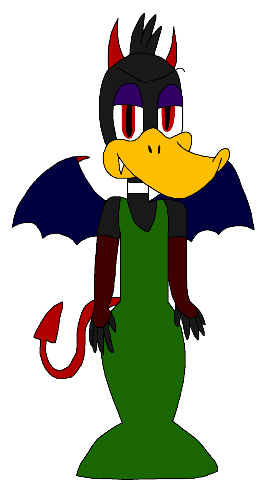 Here's Devil Daffy-Tan, The Main Antagonist of Luigi: I Don't Wanna Live Forever, Evil Side of Daffy Duck, Brother Prince of Satan and Cousin of Lilith Morgana Massacre, His Gender is Transexual (He loves Crossdressing and Make up but his Voice is possible looks like that Deadeye Duck)