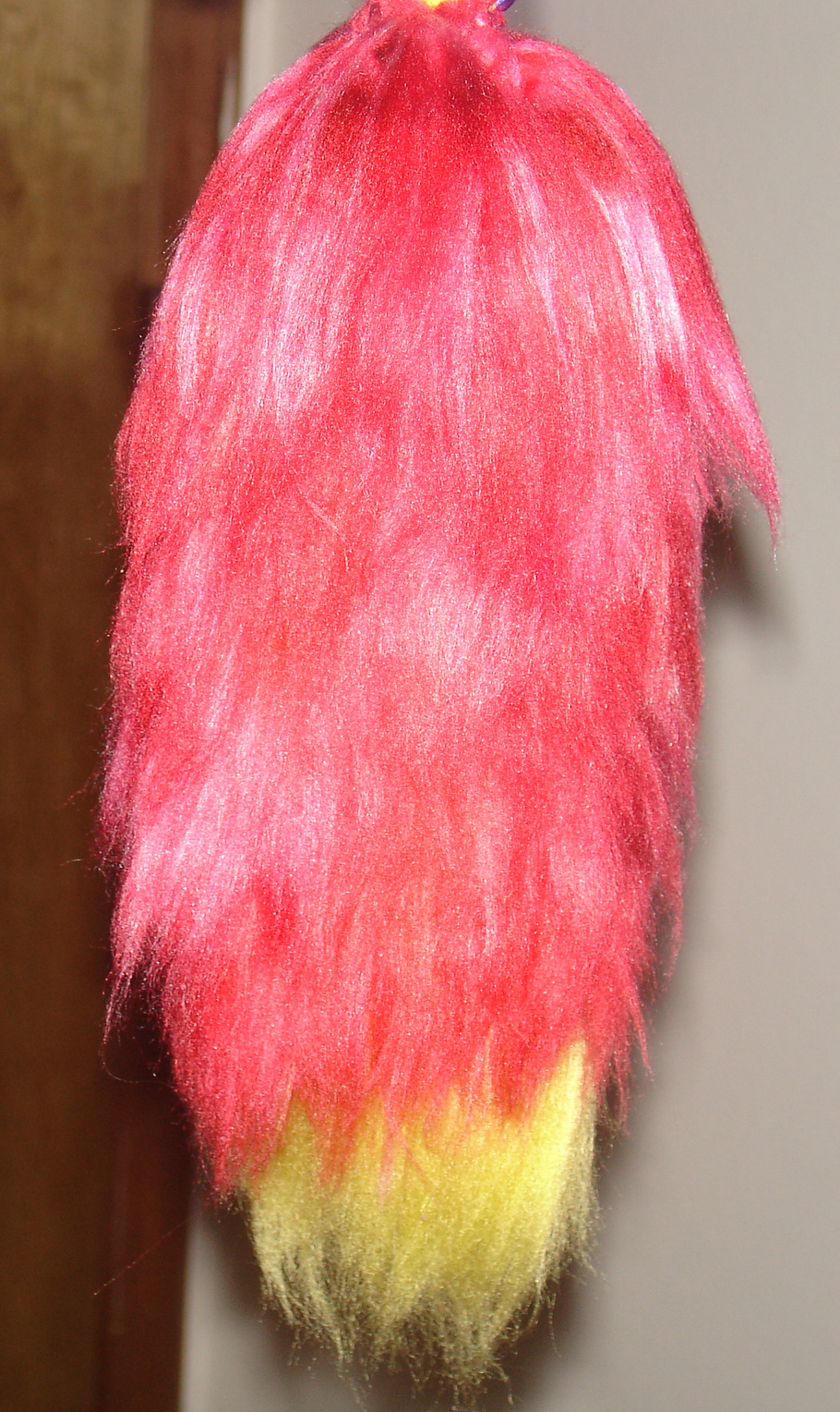 made another child sized tail about 8-9 inches long.... tried a different type of yarn and liked it...if only it weren't so expensive x.x;