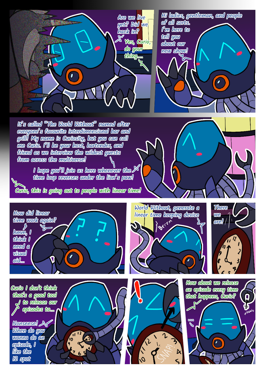 Personally this is a great place for me to chase a lighter tone, maybe tell some jokes, and just share in the intrigue and joy of other people's characters and world. As you might have intuited from the comic, there will be no upload schedule.