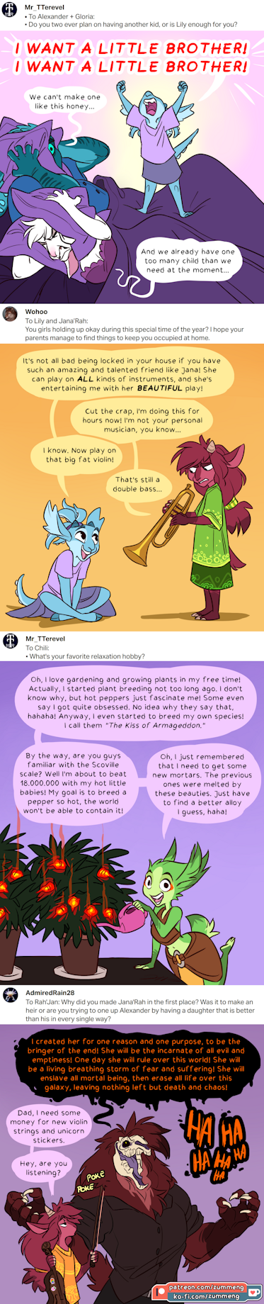 Here are the answers for the last Patreon Q&A, where my patrons could ask questions from Estella, Evie, or others from my comics :)