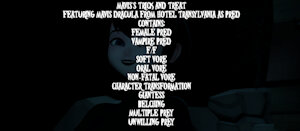 Mavis peeked her massive head and right hand out from the right of the house, smiling as the eighteen-year-olds took the bait. She revealed herself to be behind the house the entire time, lying on her stomach to hide under the building’s height, and brought her mouth to a large pipe that she magically installed in the back of the house. The Daughter of Count Dracula closed her eyes and wrapped her lips around the tube.