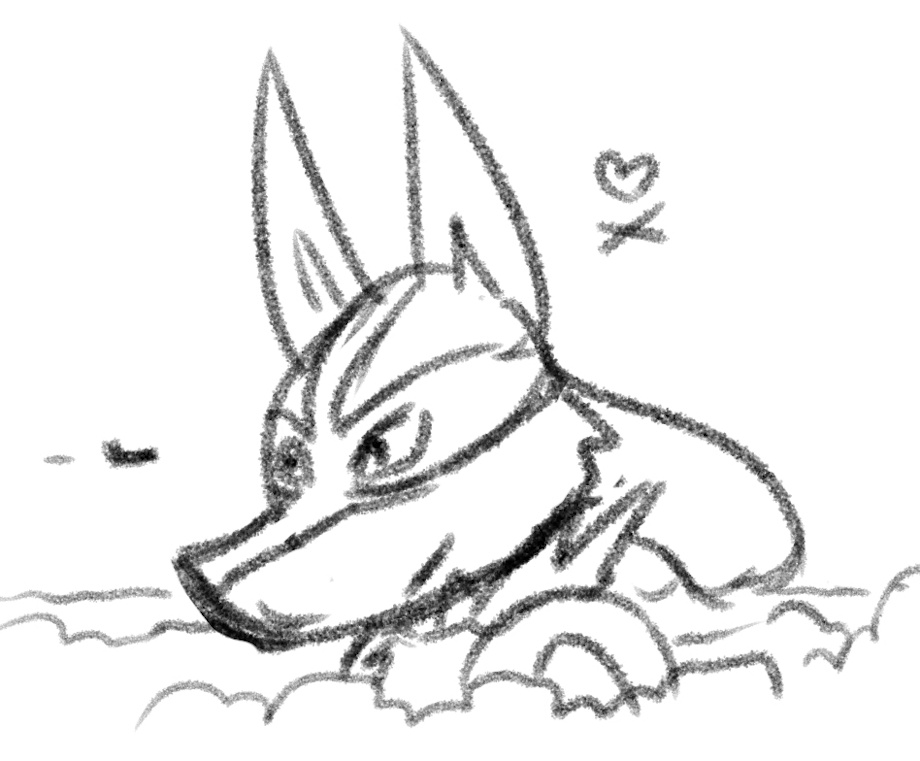 Sketch of the Good Boy finding a treat.
