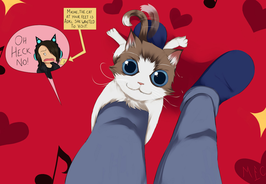 SomariaMoon got themselves a sequel to this Catification pic of AdrianaFigueroa as a Patreon Reward, now seemingly used to her new form, grabbing one of Masae's legs with a playful face.