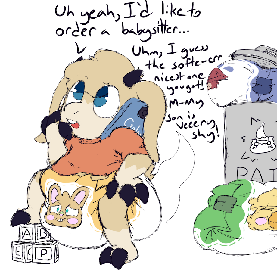 He likes to hire babysitters to turn into pamps, don't worry they usually get to change back!... By behaving and make sure that they can be filled to their fullest!~
