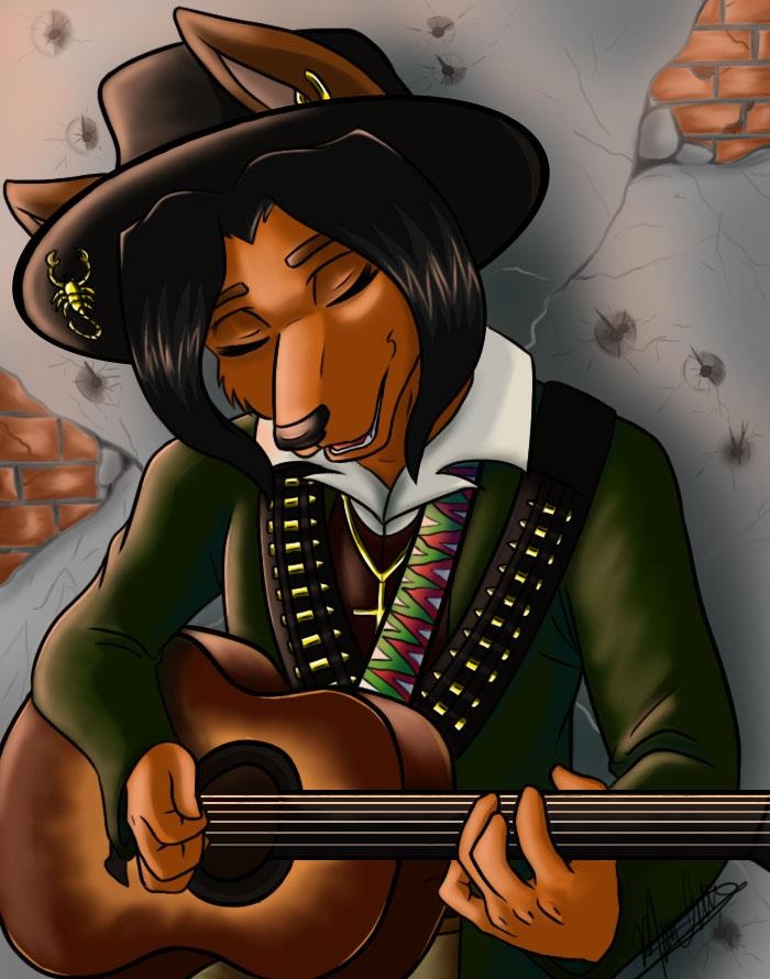 Something like that X3 The pic is based in one of my tales (only in Spanish for the moment) where my OC fights and sing against a mexican drug cartel
