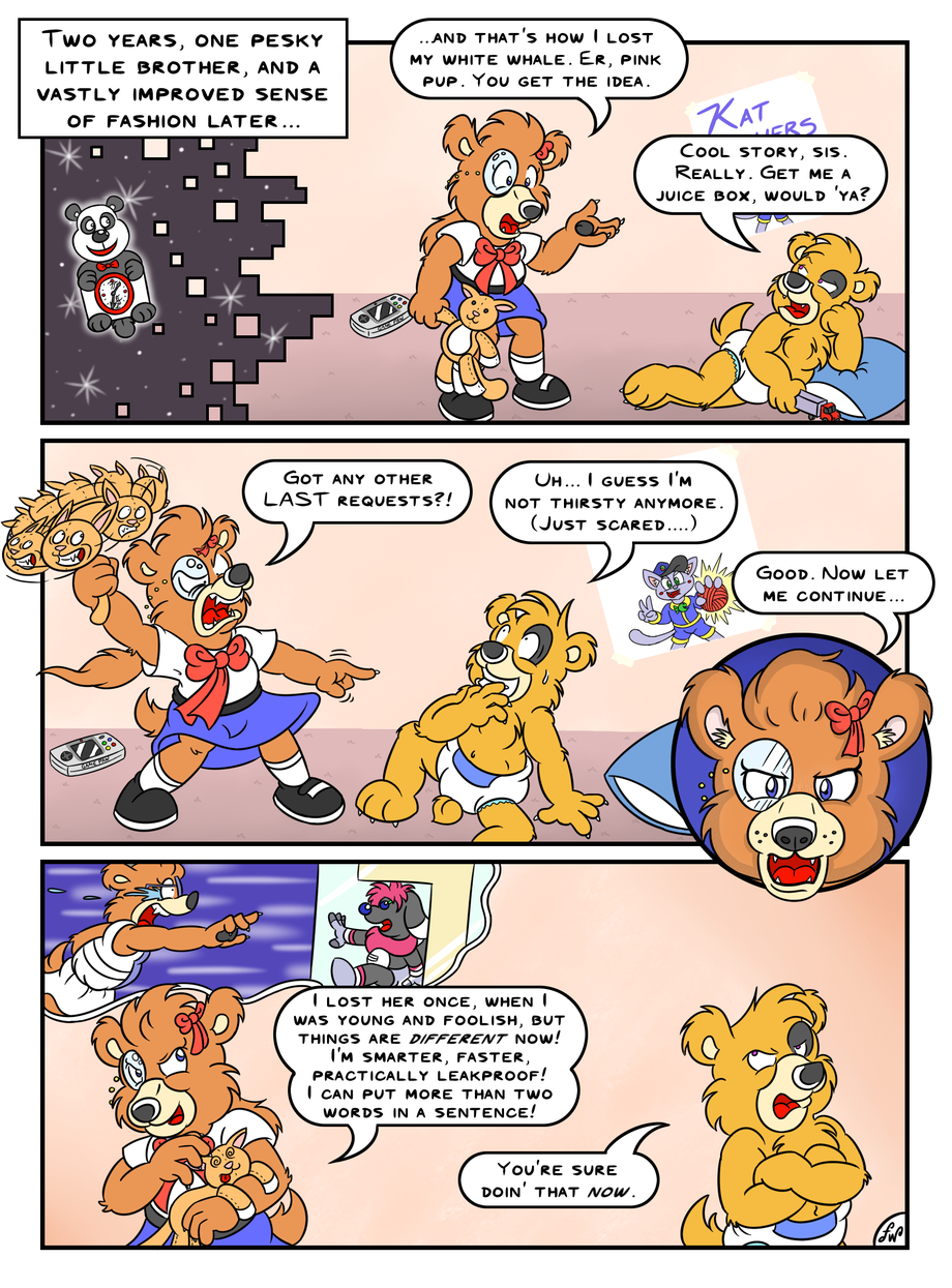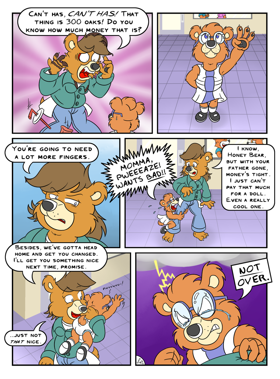 We return to the Tree of Plenty Mall for the last half of the story's flashback. This could have gone on for three pages, maybe even four. However, I thought it better to wrap things up now and dive headfirst into the main story, rather than spinning my wheels on needless foreshadowing.