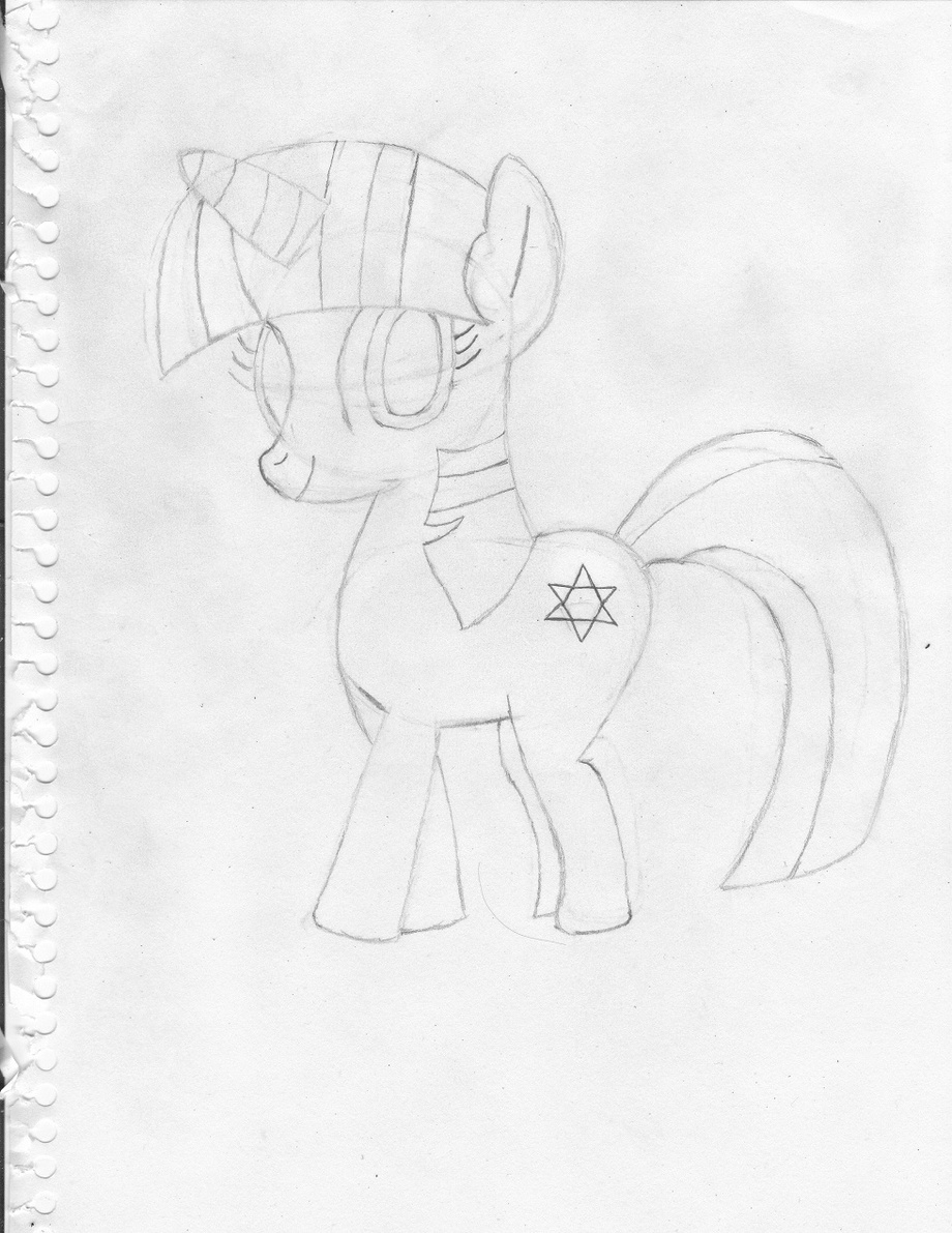 I know, her Cutie Mark makes her look Jewish right now, but in the colored version her Cutie Mark will look normal. xD