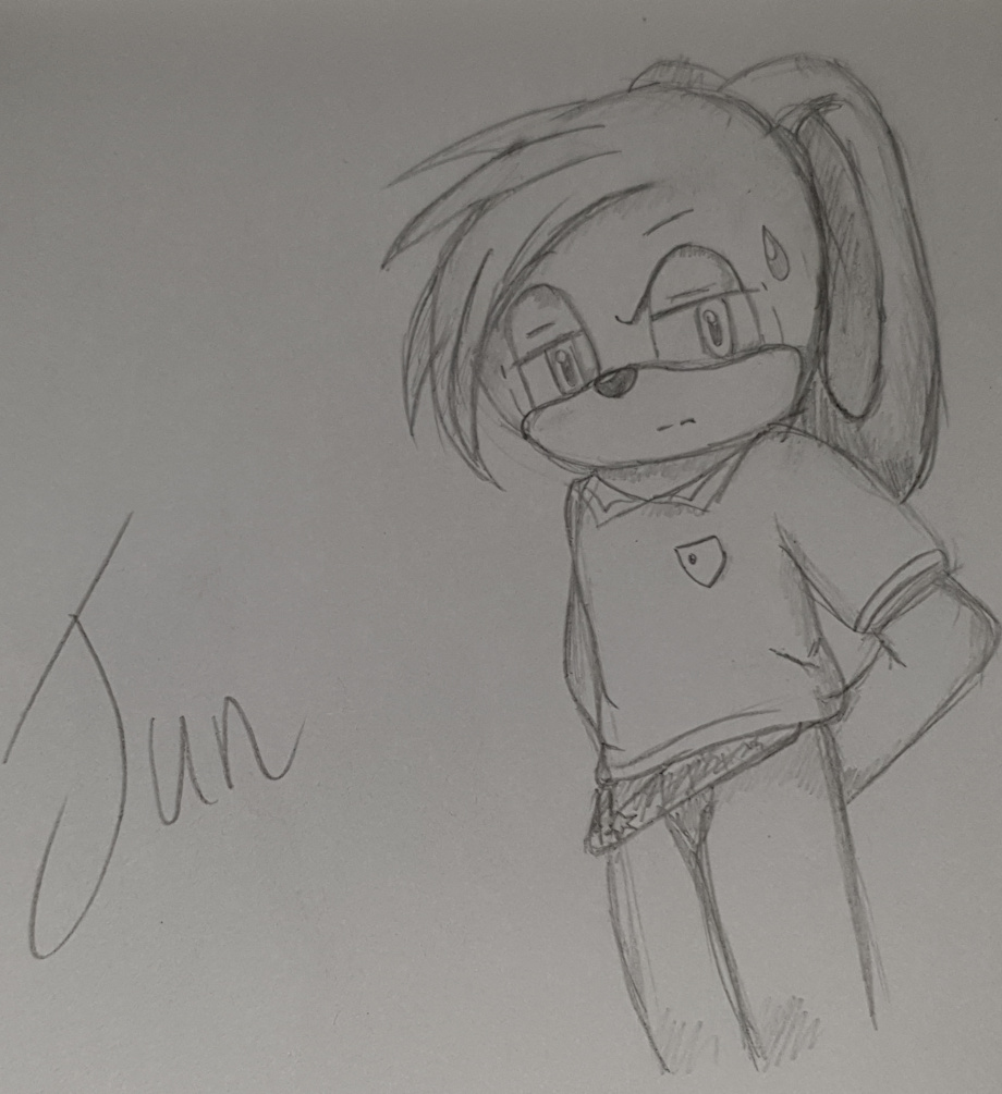 What is this? Me actually drawing something and then liking it? Unheard of. Anyway, one of my ocs, Jun! He is married to my AU Sonic and they have a family together!