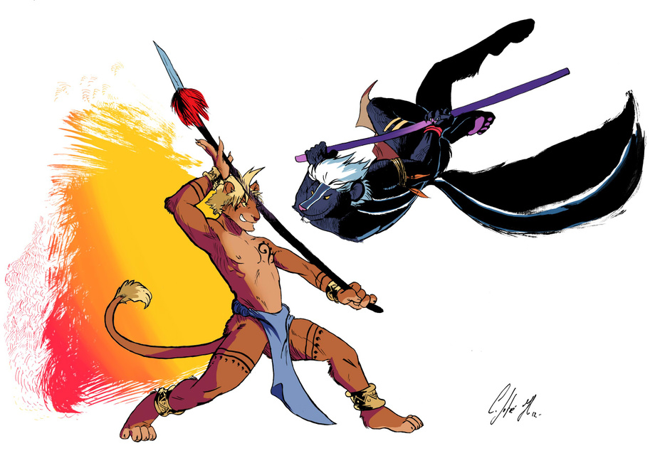 Comission for bluedude from FA of his skunk character fighting against Franko.