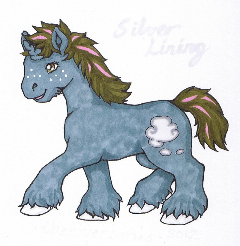 Silver Lining is a Pegasus /Unicorn mix. Since she was born with no recognizable Pegasus traits, her parents gave her an old, common Pegasus name to point to that half of her heritage in some way. She has none of the skills normally connected to Pegasi, not even cloudwalking or cloudshaping. (Some part of her longs to fly all the same, and she’s secretly wasted a fair lot of time brooding over that.)