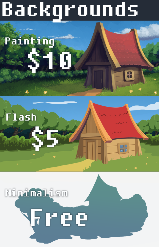 Examples for backgrounds I did only for to show how background will be look like. This is not prices for landscape painting x_x