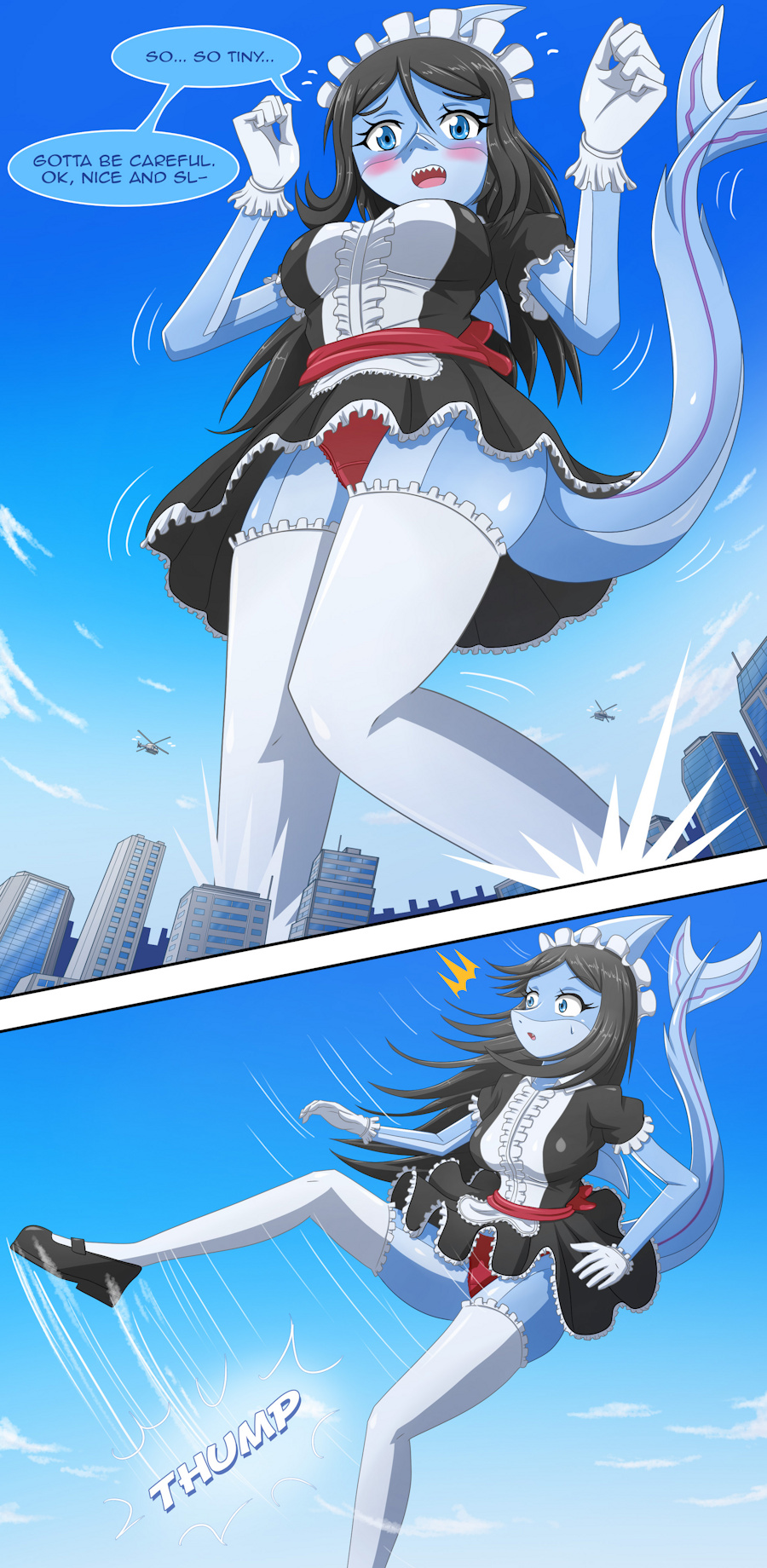 Commission by sir--raptor Thank you so much for your support! Meet Alluria, one clumsy and cute shark maid that happens to change her own size in many different scenes. Sometimes small or sometimes omni; and for this case, HUGE! Let's how she handles this whole mess.