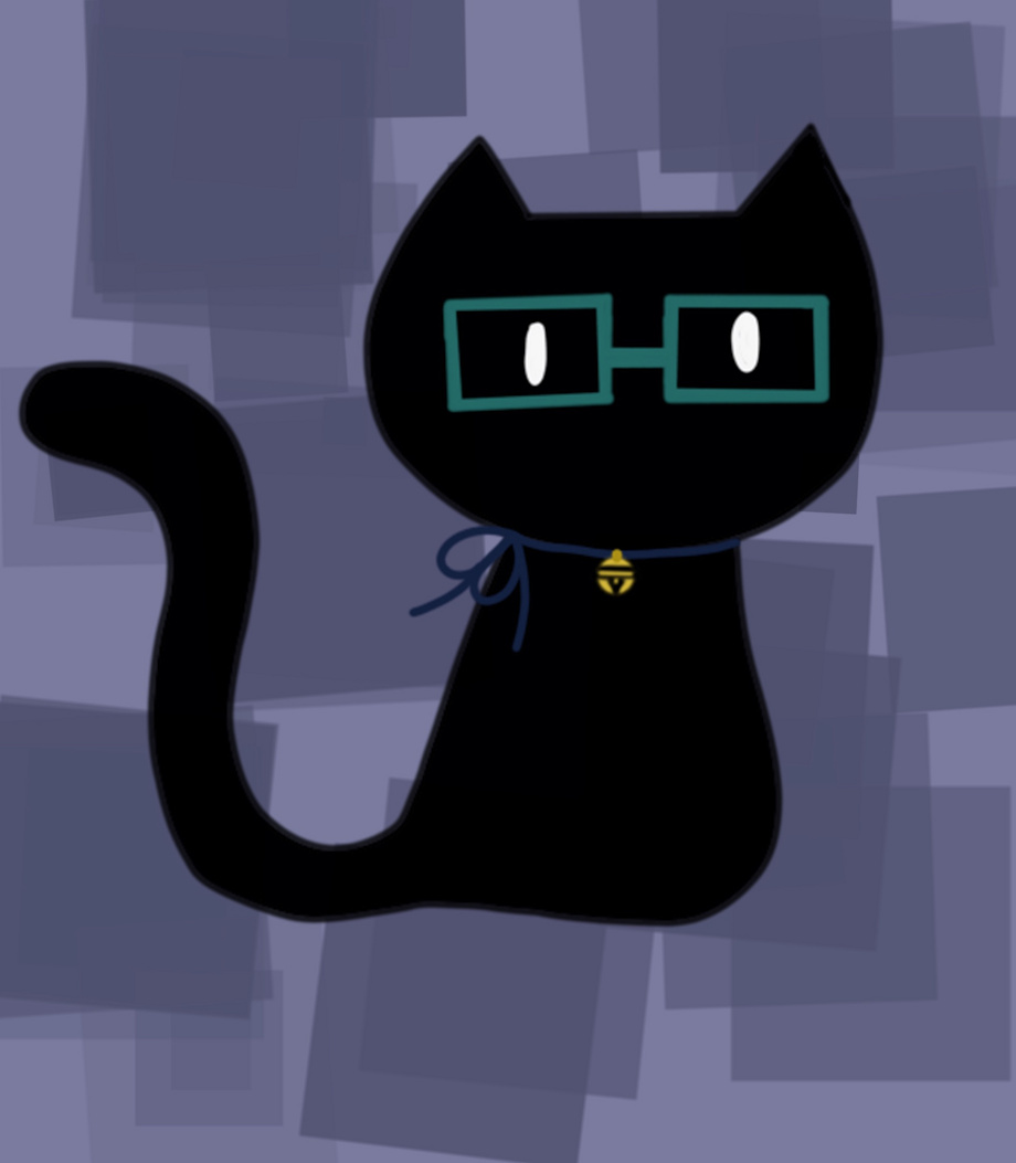 :3 not much this just random pic made so i guess its boredom pic i thought maybe make cute cat mascot for comic stuff or story stuff yeah i went with chibi style and yeah a black cat with glasses like its a reviewer for stuff this was drawn freestyle cuz chibi style is easy pic to draw digitally something to display in comics or story