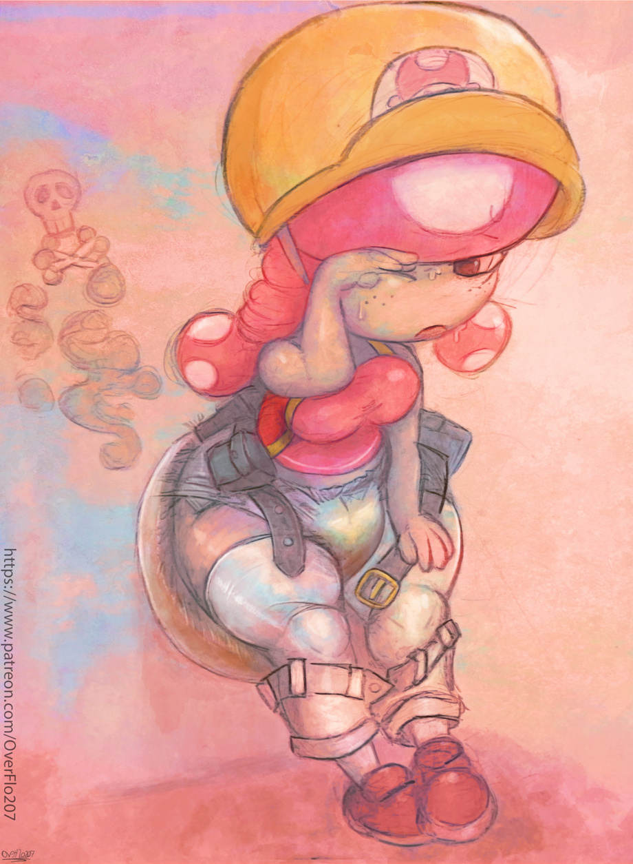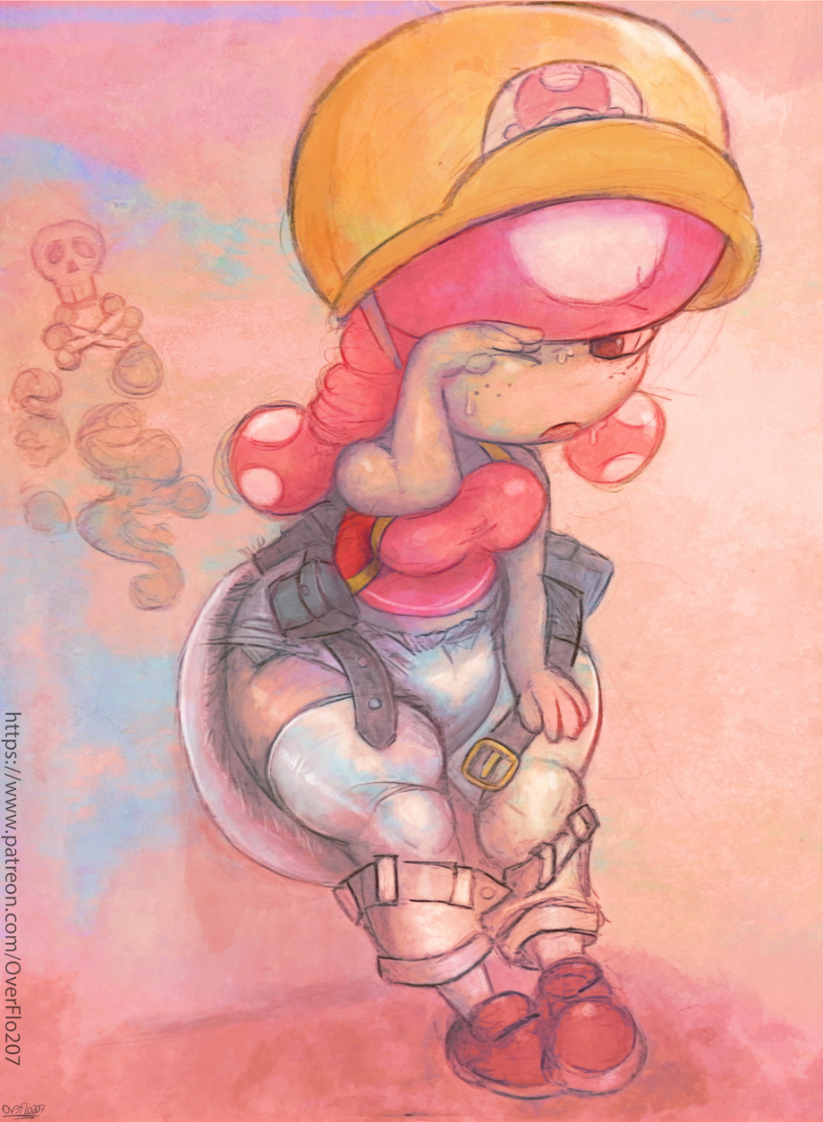 Who wanted a hardworking Toadette, after a long day of building. She loosens her belt, and lets out a well-deserved load in her diaper, know doubt stinking up the place...but she's earned it.